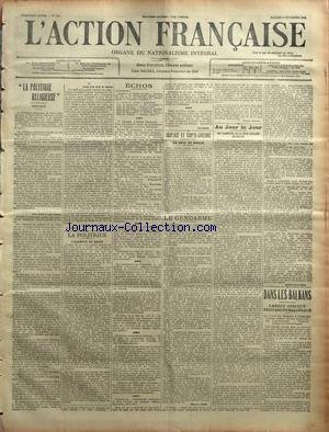 ![ACTION FRANCAISE (L') [No 314] du 09/11/1912 - ILA POLITIQUE RELIGIEUSEî - PREFACE PAR CHARLES MAURRAS LA POLITIQUE - L'EXEMPLE DE SAVOF ECHOS PAR RIVAROL TRIPLICE ET TRIPLE-ENTENTE - LA NOTE DE BERLIN PAR J.B. LE GENDARME PAR MAURICE PUJO - UN CANARD PAR MAXIME BRIENNE AU JOUR LE JOUR - LES SABOTEURS DE LA BOXE ANGLAISE EN FRANCE PAR ANDRE GAUCHER DANS LES BALKANS - L'ARMEE GRECQUE S'EMPARE DE SALONIQUE. en ligne ACTION FRANCAISE (L') [No 314] du 09/11/1912 - ILA POLITIQUE RELIGIEUSEî - PREFACE PAR CHARLES MAURRAS LA POLITIQUE - L'EXEMPLE DE SAVOF ECHOS PAR RIVAROL TRIPLICE ET TRIPLE-ENTENTE - LA NOTE DE BERLIN PAR J.B. LE GENDARME PAR MAURICE PUJO - UN CANARD PAR MAXIME BRIENNE AU JOUR LE JOUR - LES SABOTEURS DE LA BOXE ANGLAISE EN FRANCE PAR ANDRE GAUCHER DANS LES BALKANS - L'ARMEE GRECQUE S'EMPARE DE SALONIQUE. en ligne](https://images-eu.ssl-images-amazon.com/images/I/51%2B7z0jkCDL.jpg)
